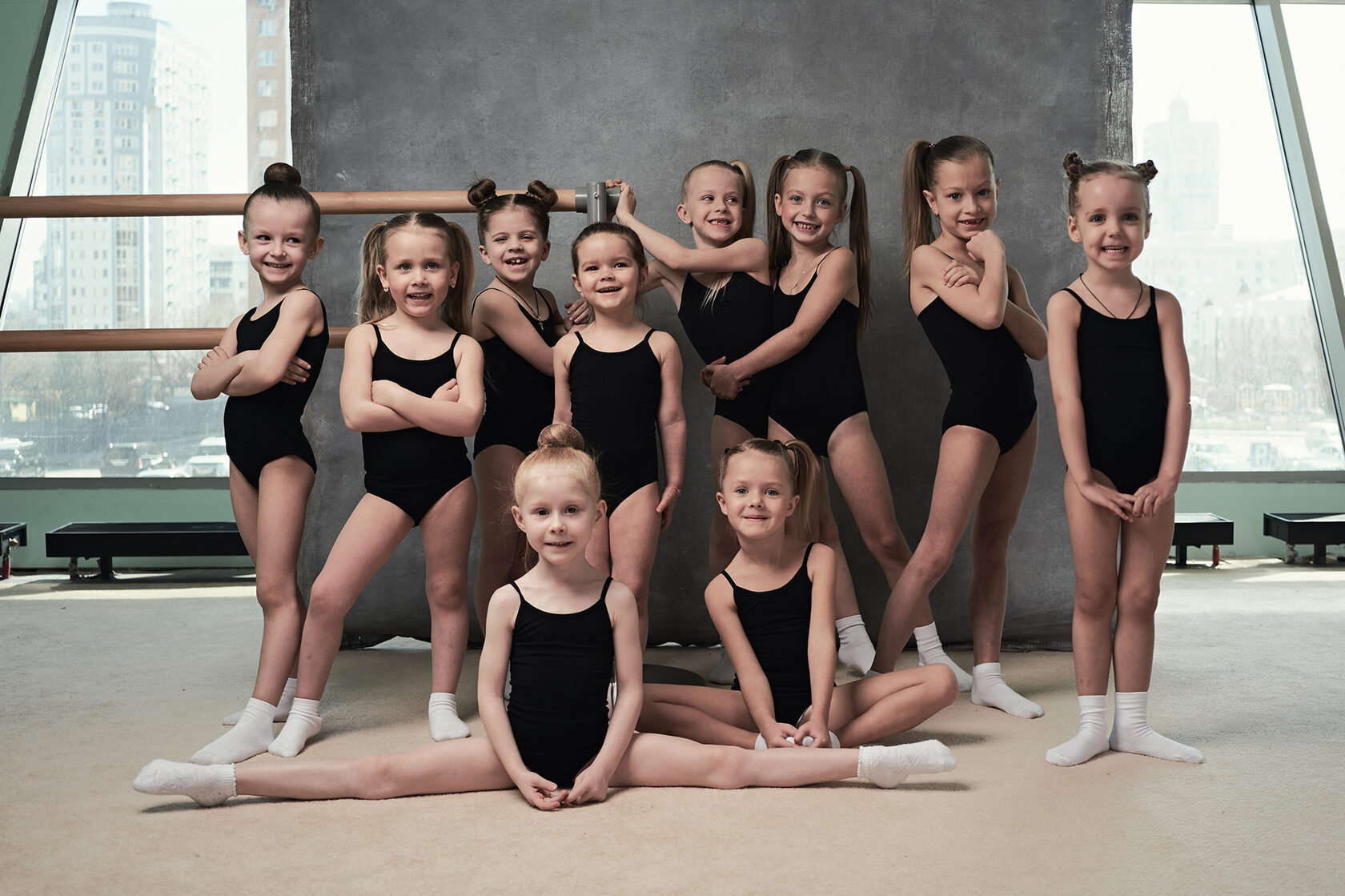 На пробное занятие и первую тренировку ребенок может быть одет в шорты (ориентируйтесь на состав: 98% полиэстер, 2% эластан; 90% хлопок 10% лайкра) и обтягивающую майку (ориентируйтесь на состав: 90% хлопок, 10% эластан), белые носочки (на первую тренировку желательно приобрести специальные полупальцы). В зависимости от температуры в зале, также можно использовать лосины, гетры, толстовку. Желательно, чтобы одежда была одного цвета (либо сочетание двух цветов).